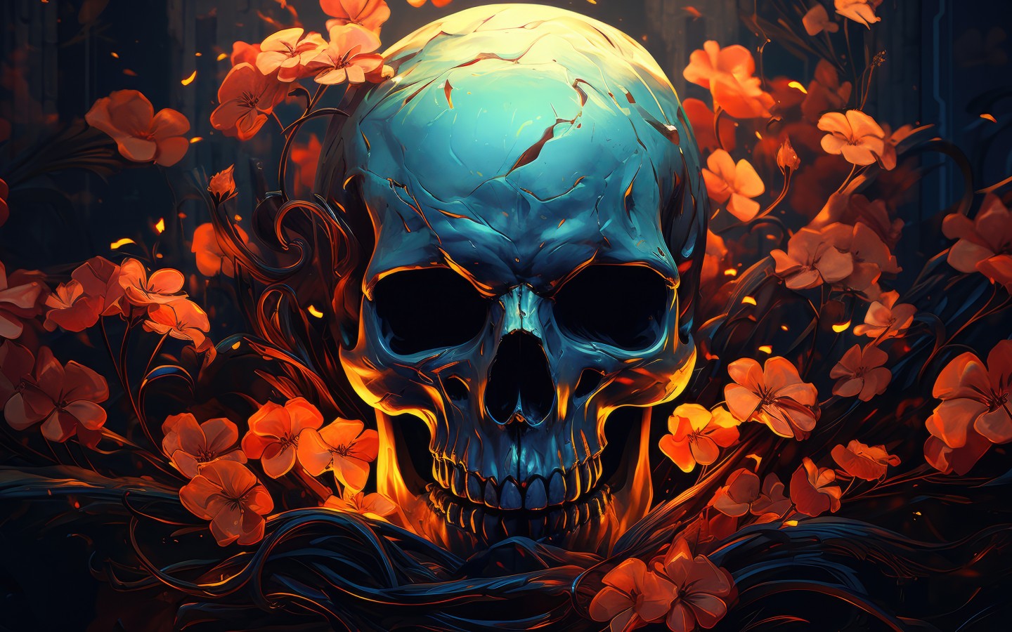 Skull Flower Mix AI Art Wallpaper - 1440x900