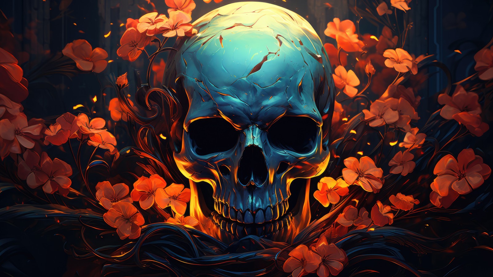 Skull Flower Mix AI Art Wallpaper - 1600x900