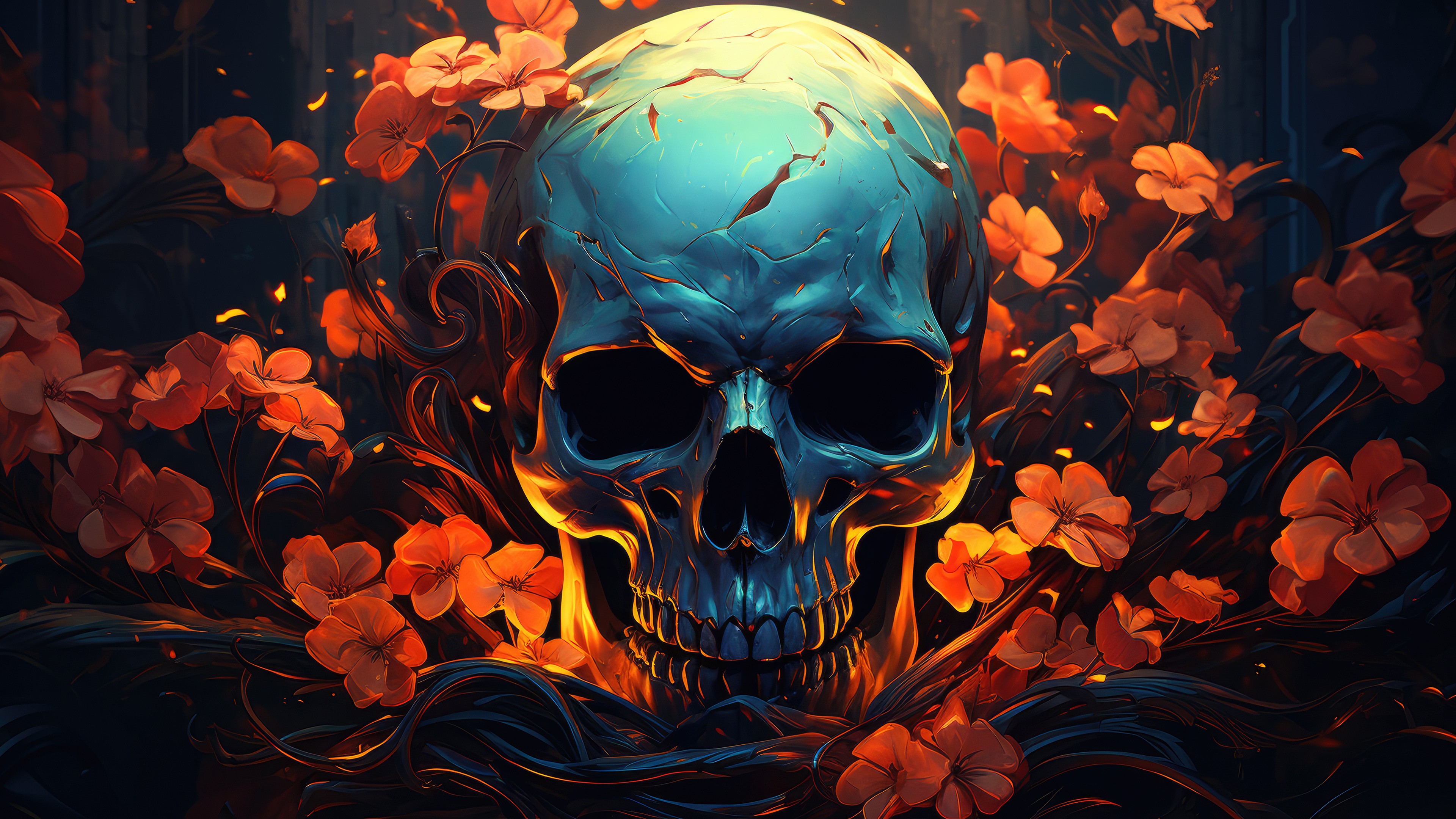 Skull Flower Mix AI Art Wallpaper - 3840x2160