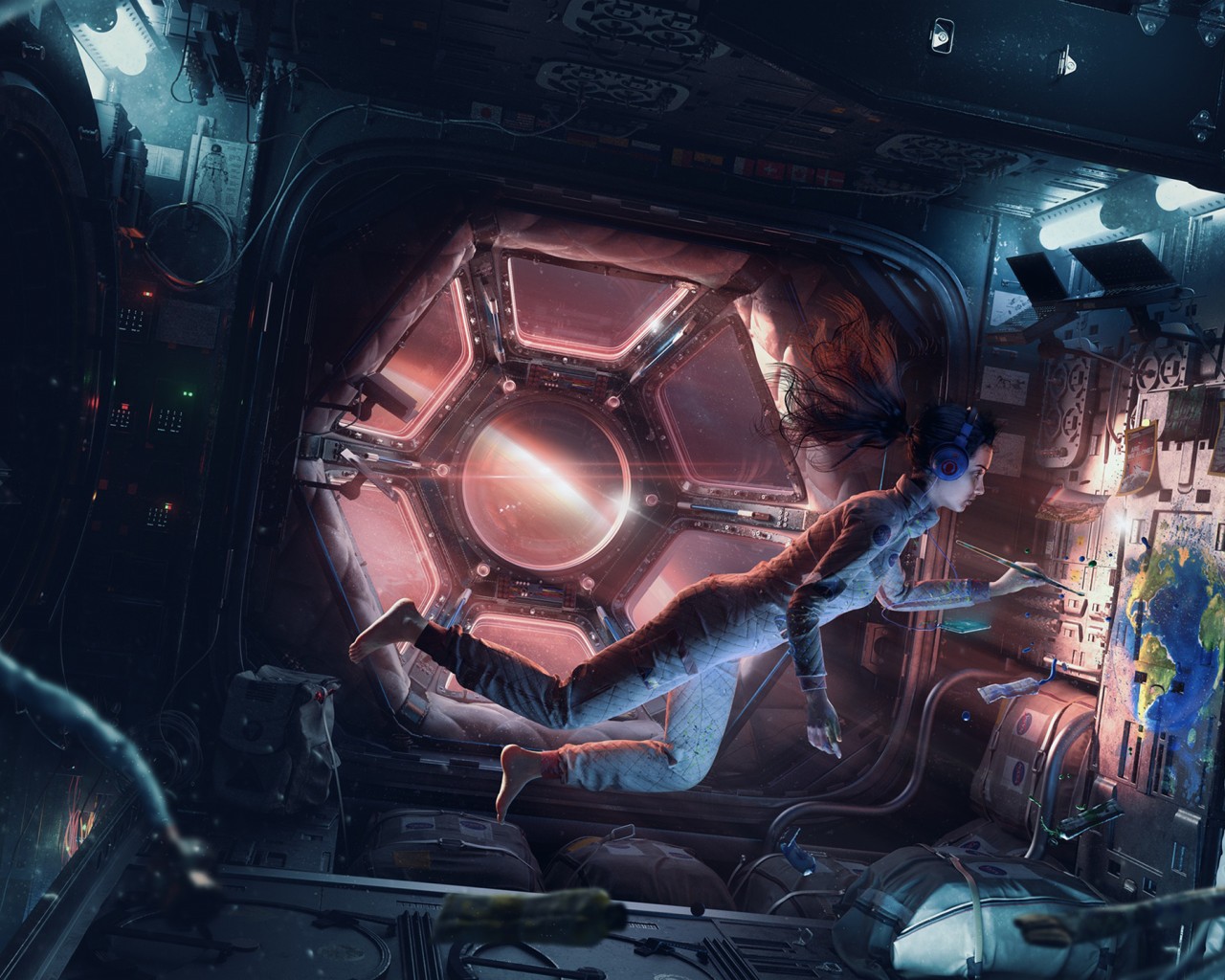 Space Astronaut Girl Earth Painting Wallpaper - 1280x1024