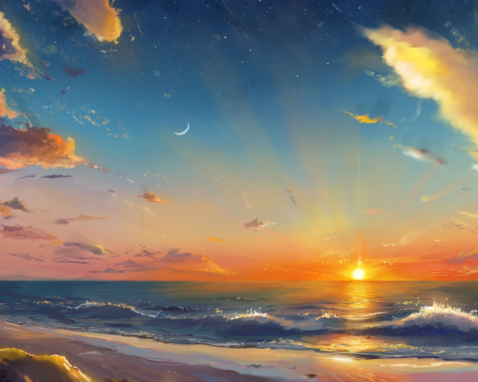 Sunlight Sea Waves Digital Paint Wallpaper - 1600x1280