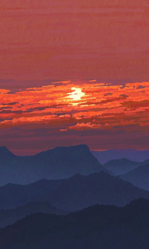 Sunset Mountains Bird Red Sky Art Wallpaper - 480x800