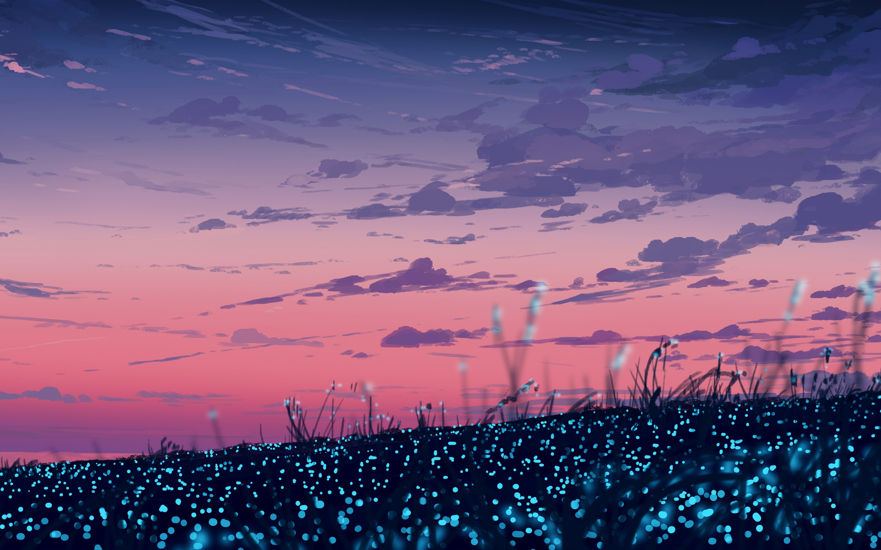 Sunset Neon Blue Flower Field Art Wallpaper - 2880x1800