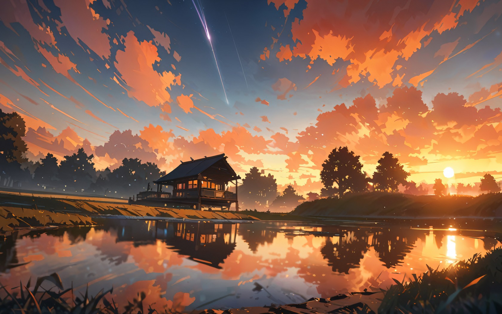 Tranquil Sunset Pond Landscape Ai Art Wallpaper - 1680x1050