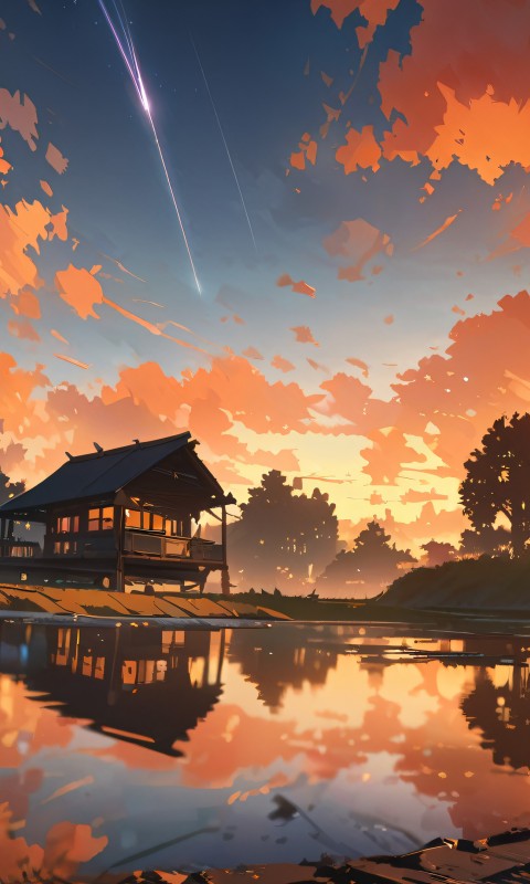 Tranquil Sunset Pond Landscape Ai Art Wallpaper - 480x800