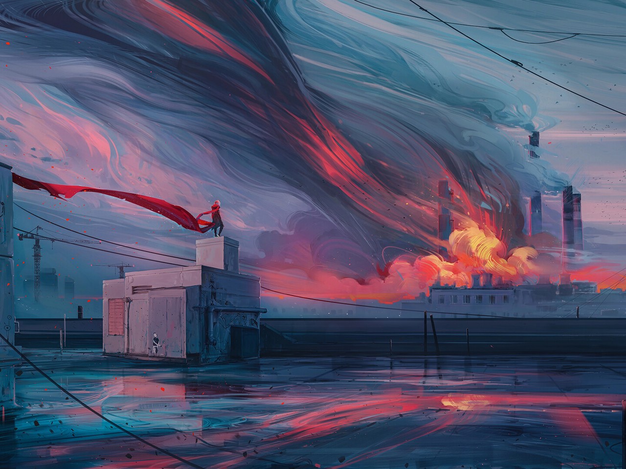 Urban Factory Cityscape Graffiti Fire Wallpaper - 1280x960