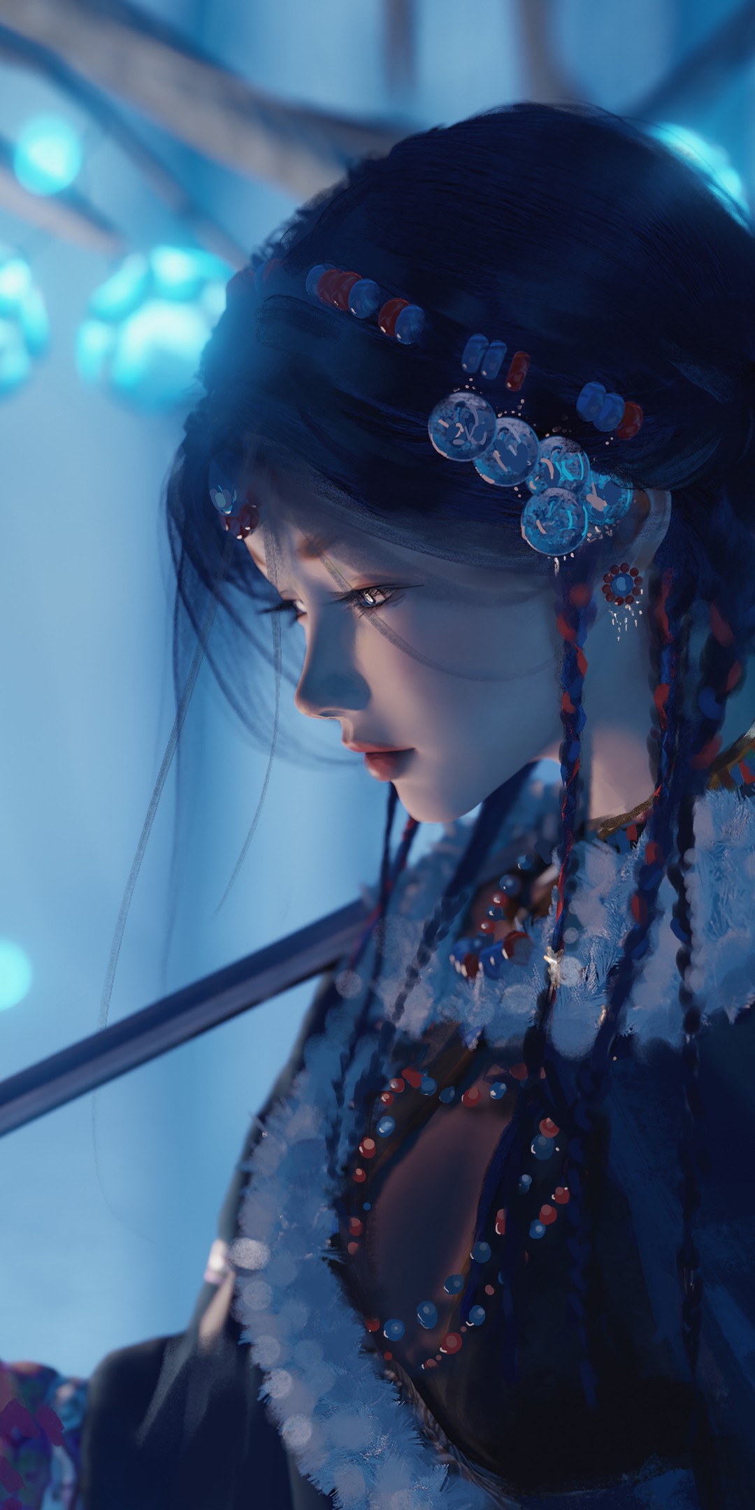 Women Jewelry Blue Flowers Painting Wallpaper - 1080x2160
