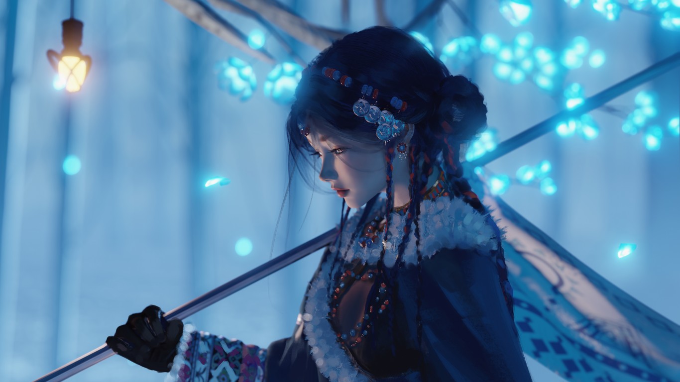 Women Jewelry Blue Flowers Painting Wallpaper - 1366x768