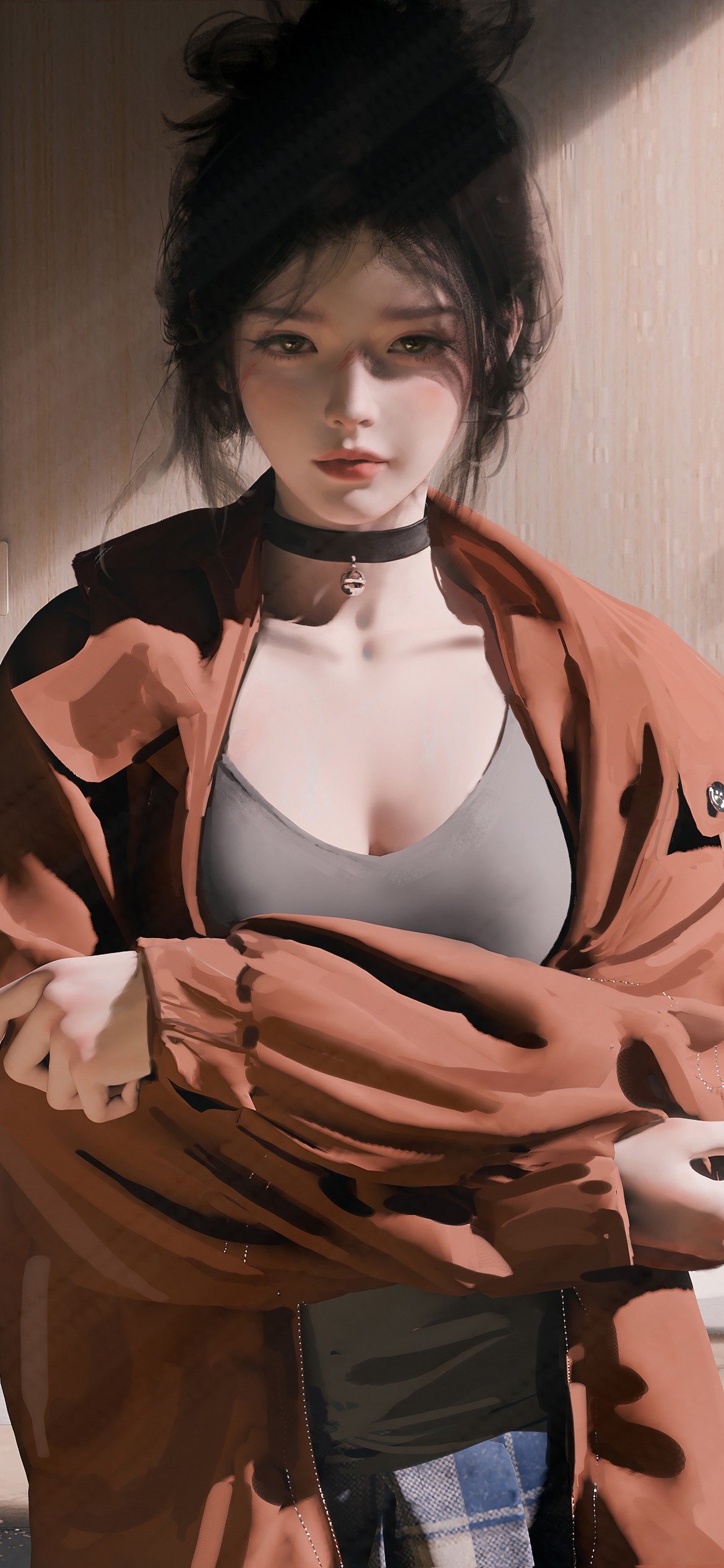 Women Standing Green Eyes Light Wallpaper - 1170x2532