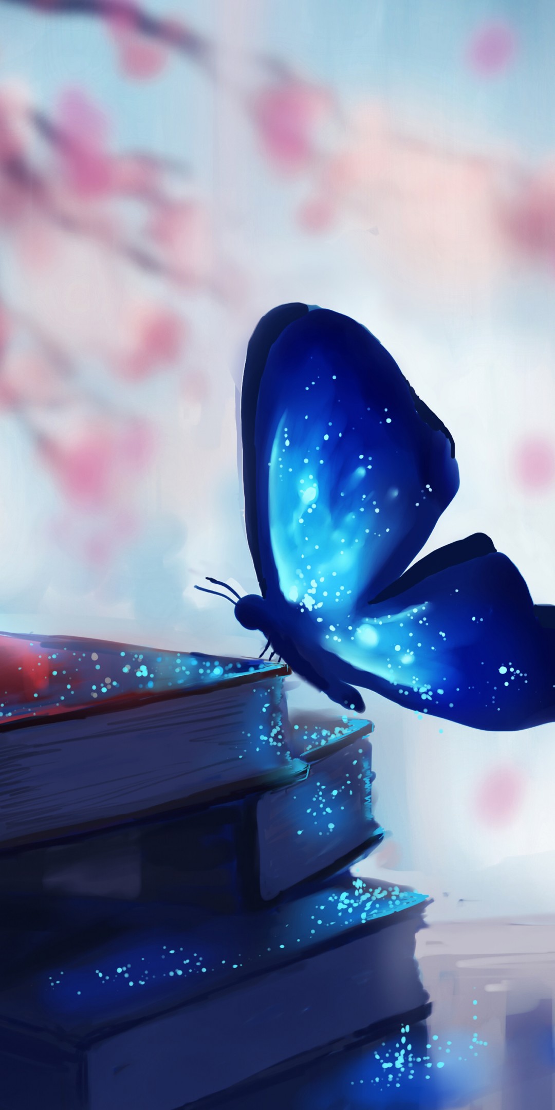 Blue Fantasy Butterfly Books Art Wallpaper - 1080x2160
