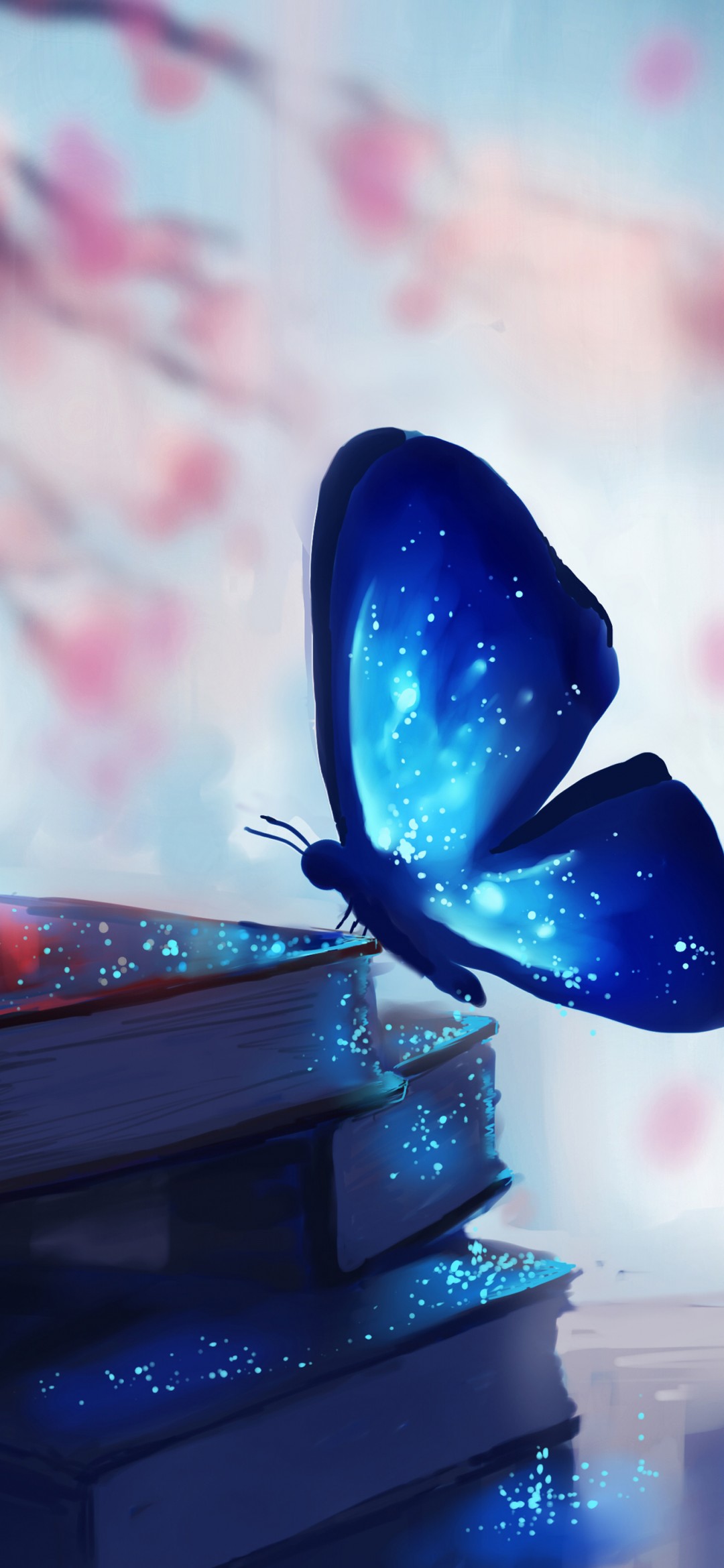 Blue Fantasy Butterfly Books Art Wallpaper - 1080x2340
