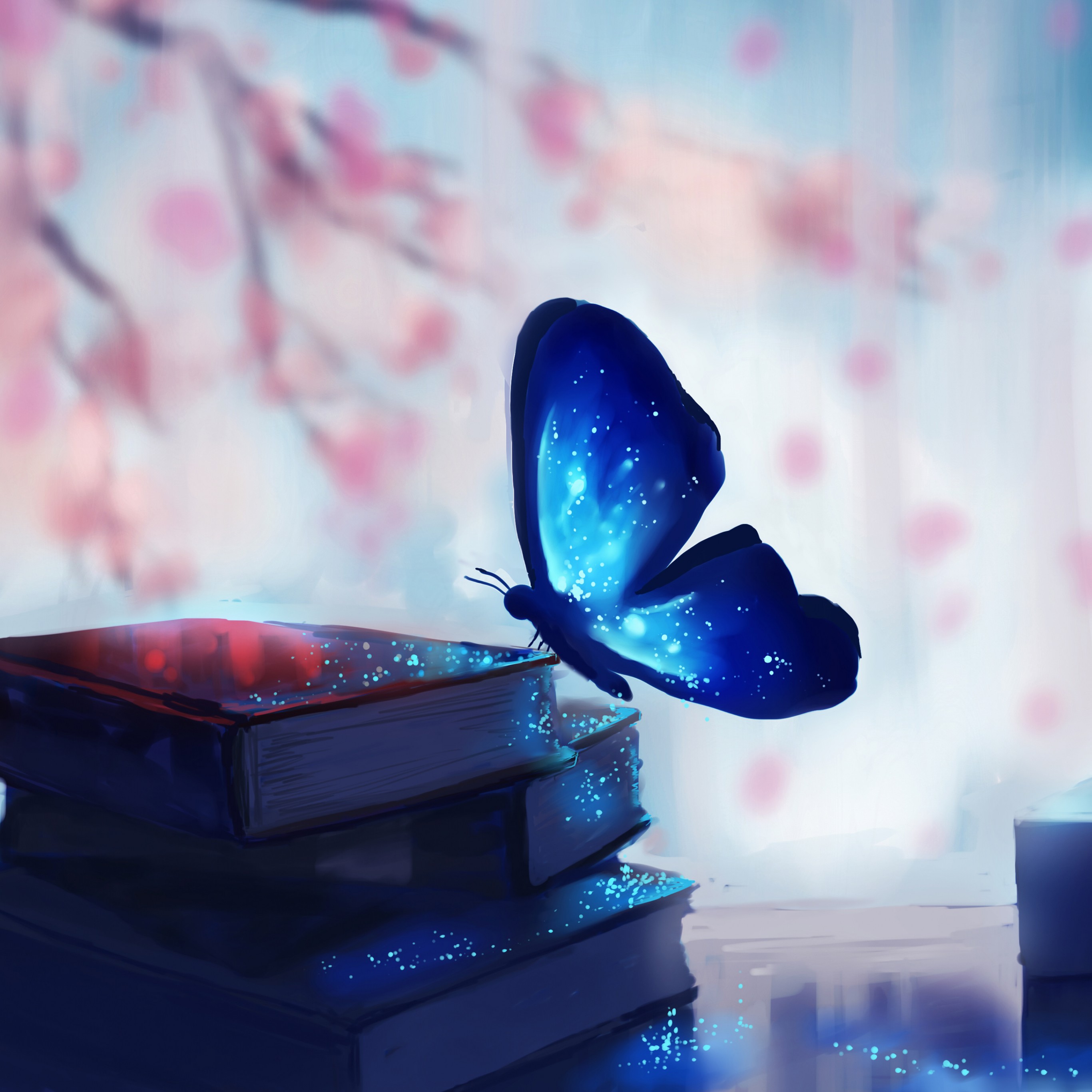Blue Fantasy Butterfly Books Art Wallpaper - 2732x2732
