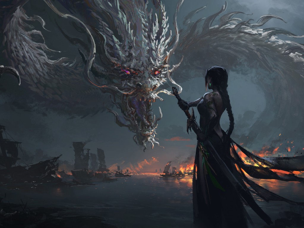 Chinese Dragon Warrior Woman Sword Wallpaper - 1024x768