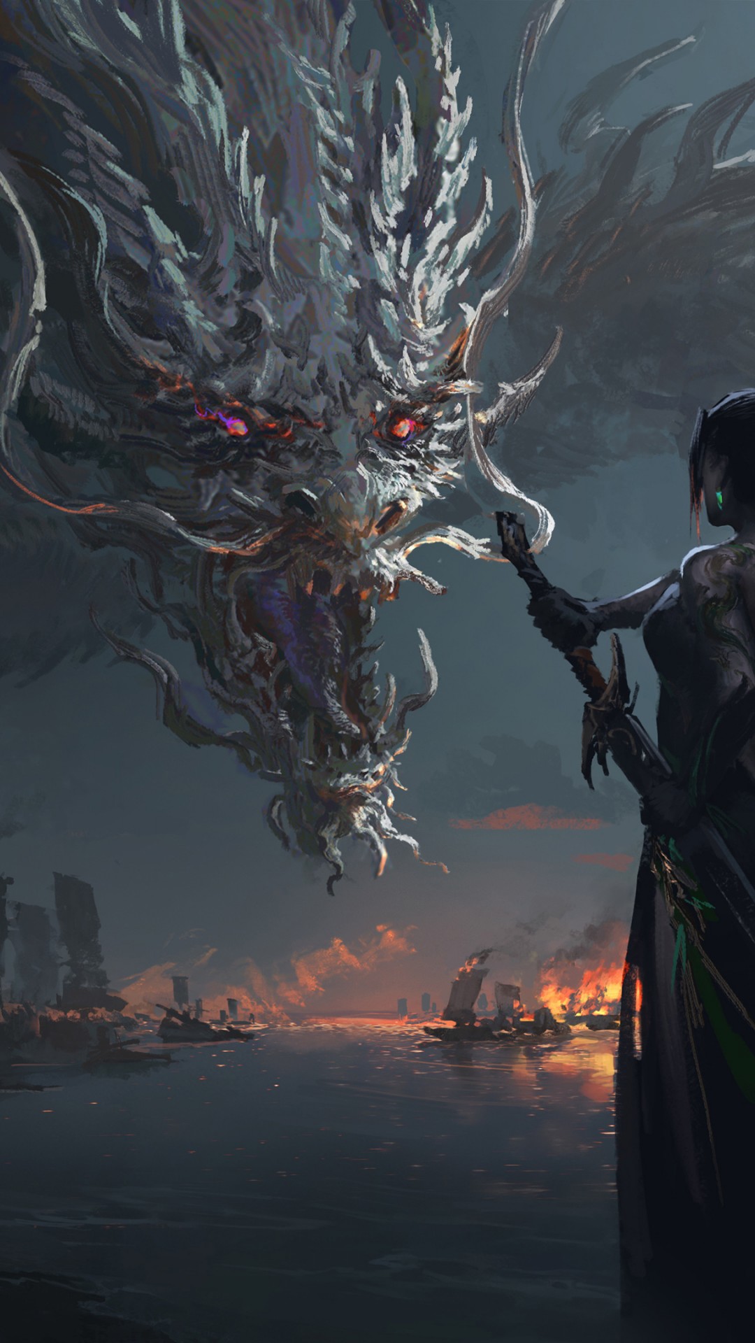 Chinese Dragon Warrior Woman Sword Wallpaper - 1080x1920
