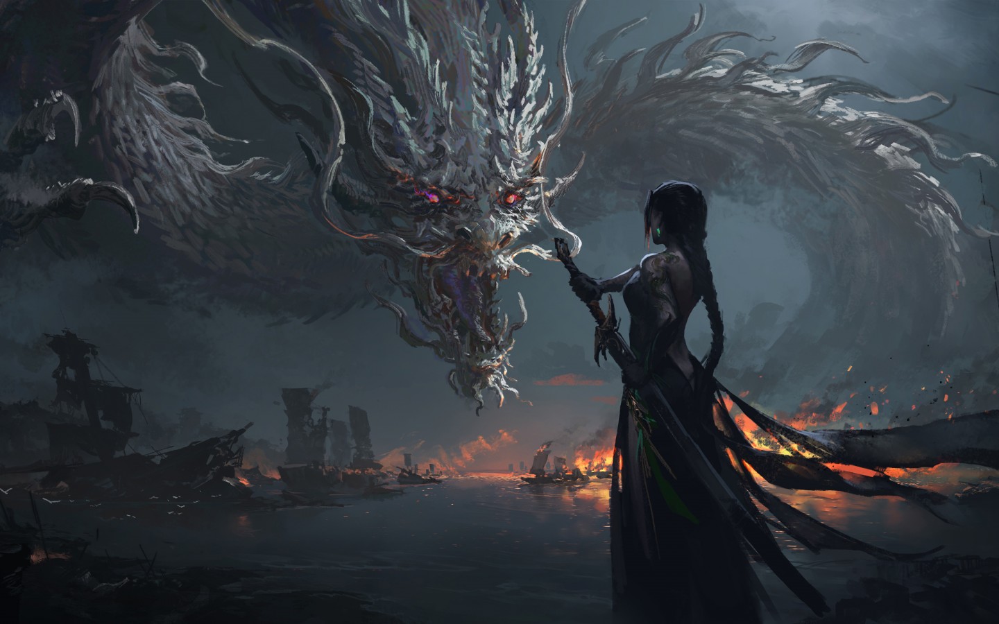 Chinese Dragon Warrior Woman Sword Wallpaper - 1440x900