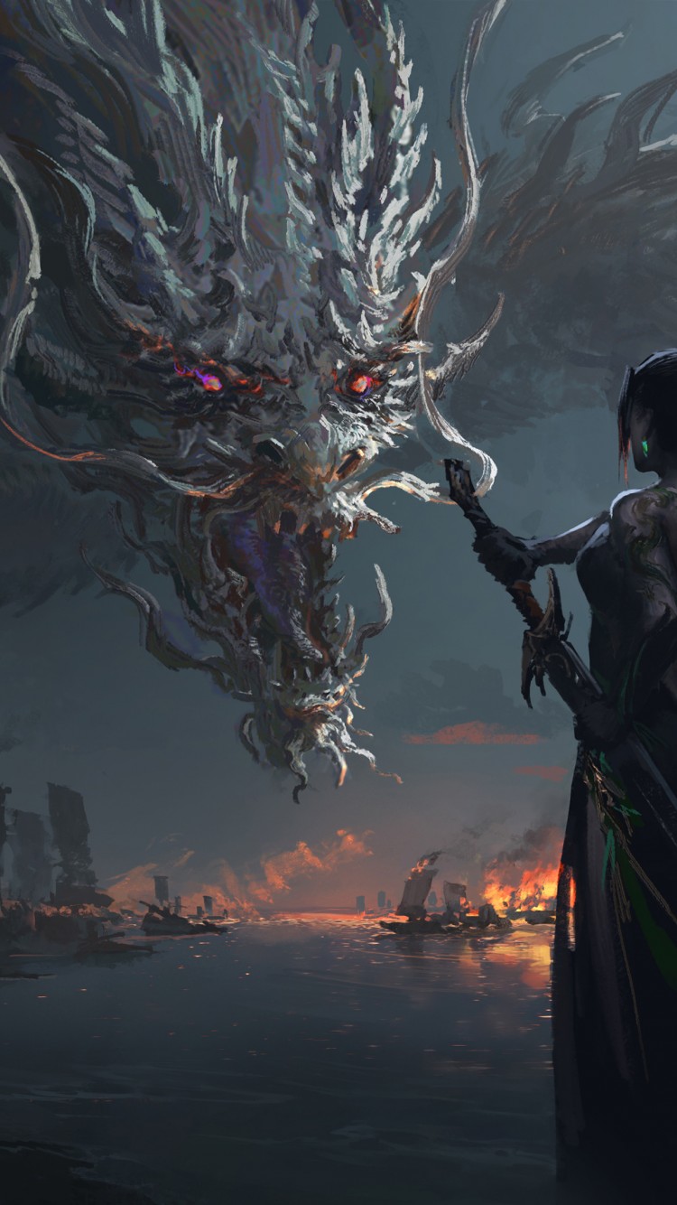 Chinese Dragon Warrior Woman Sword Wallpaper - 750x1334