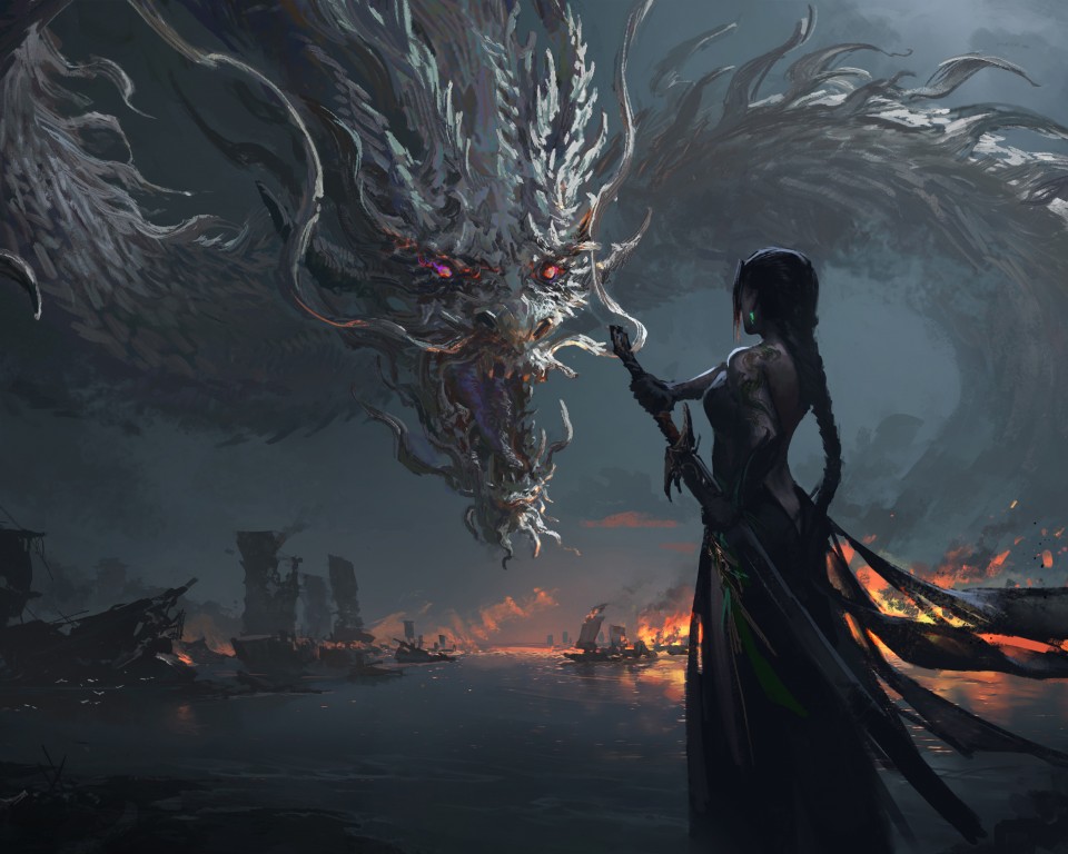 Chinese Dragon Warrior Woman Sword Wallpaper - 960x768