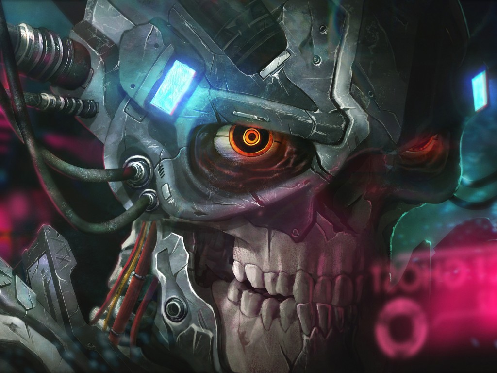 Digital Cyborg Metal Skull Wallpaper - 1024x768