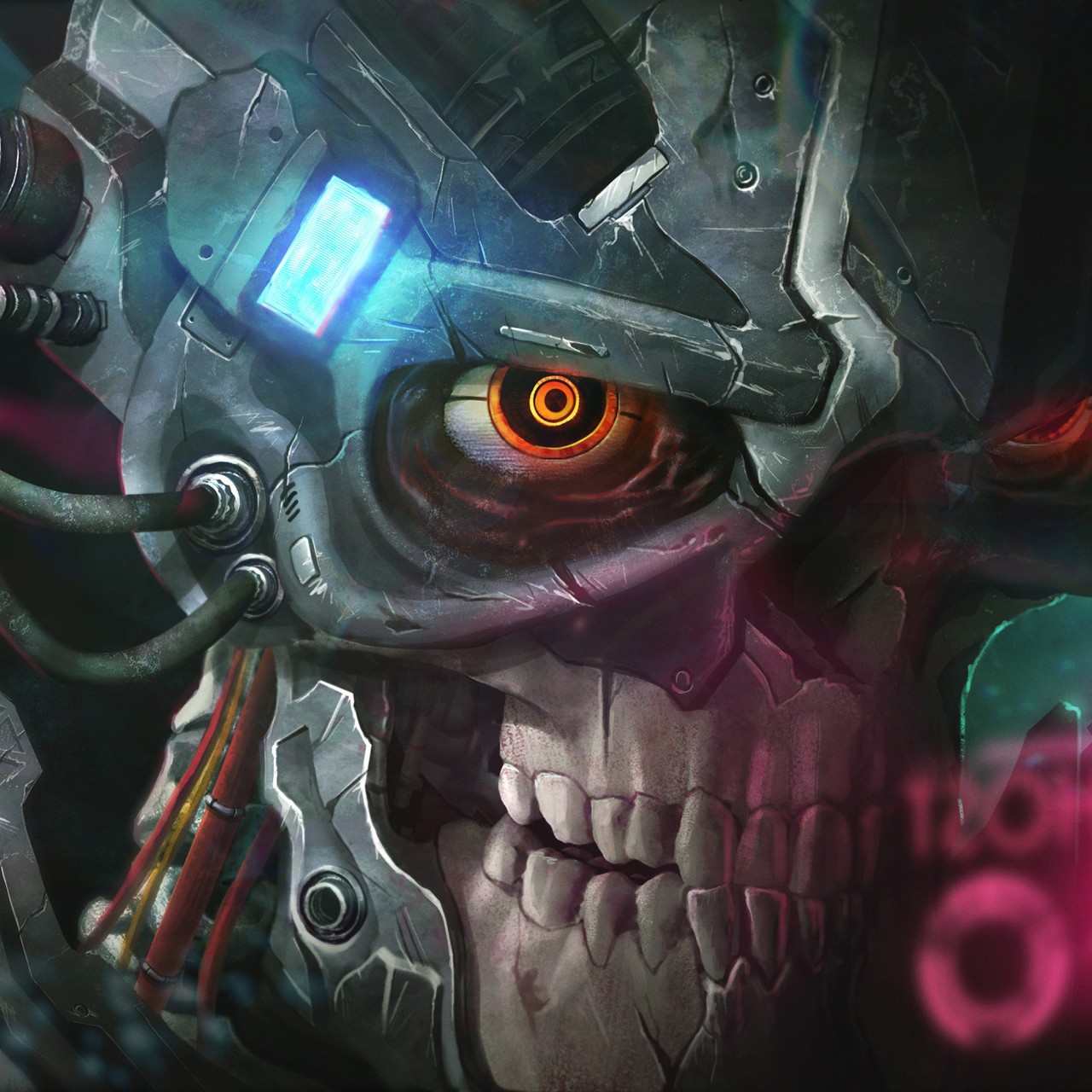 Digital Cyborg Metal Skull Wallpaper - 1280x1280