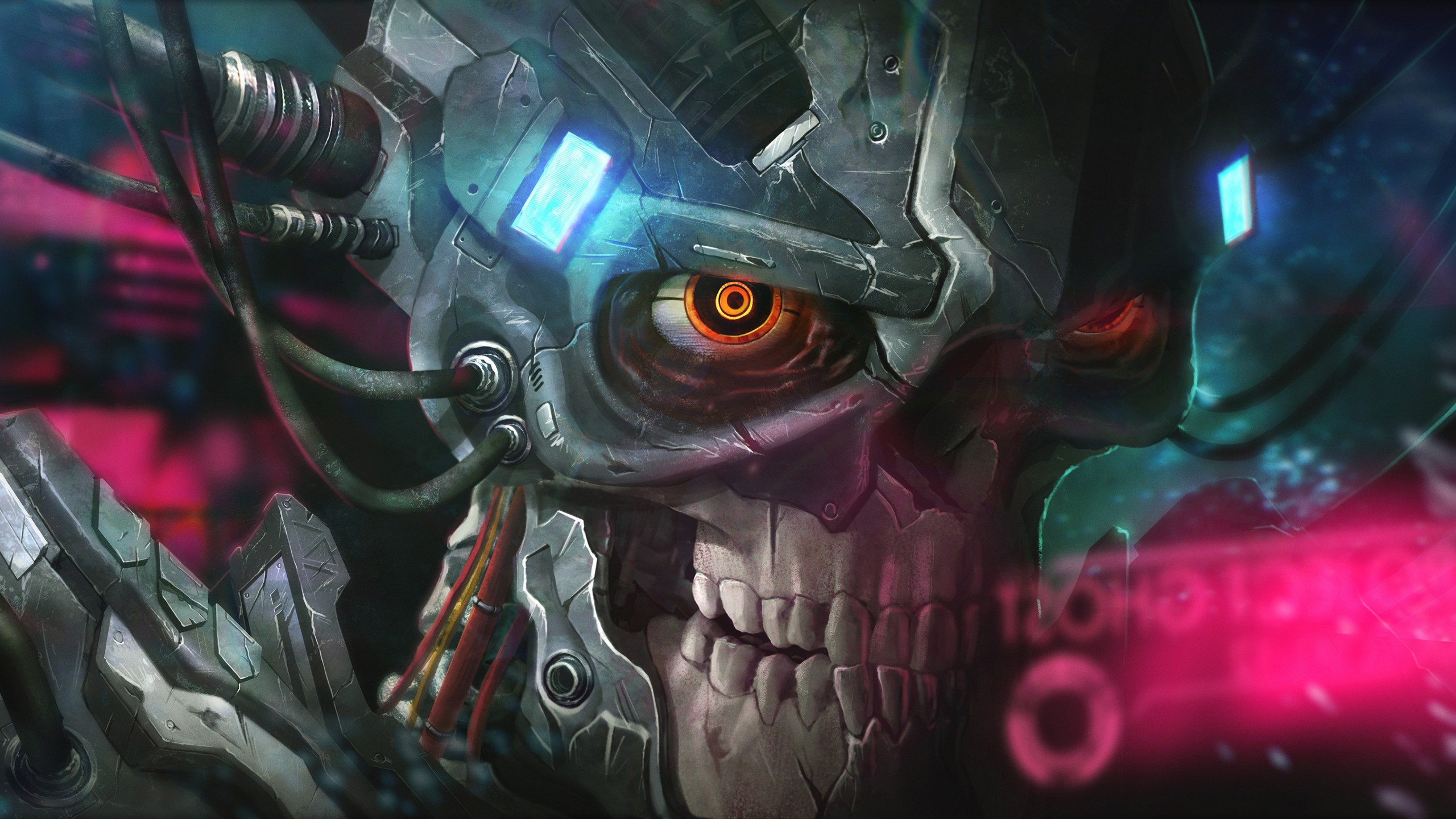 Digital Cyborg Metal Skull Wallpaper - 2560x1440