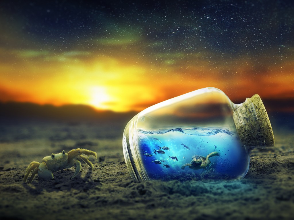 Fantasy Crab Sunset Bottle Wallpaper - 1024x768