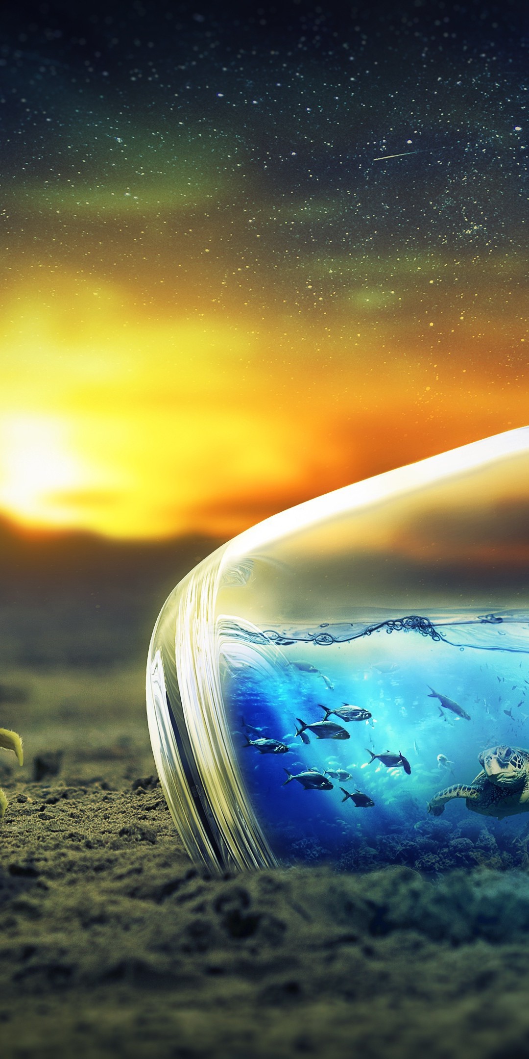 Fantasy Crab Sunset Bottle Wallpaper - 1080x2160