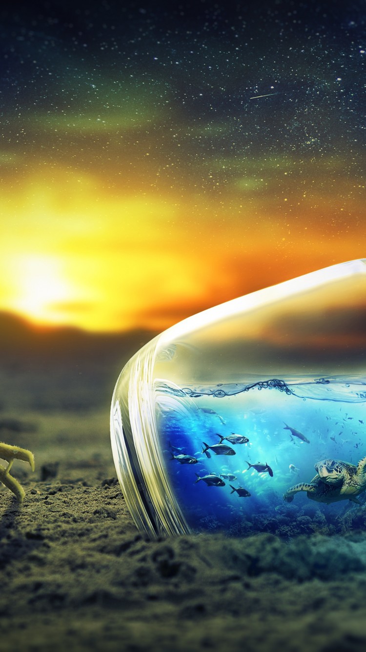 Fantasy Crab Sunset Bottle Wallpaper - 750x1334