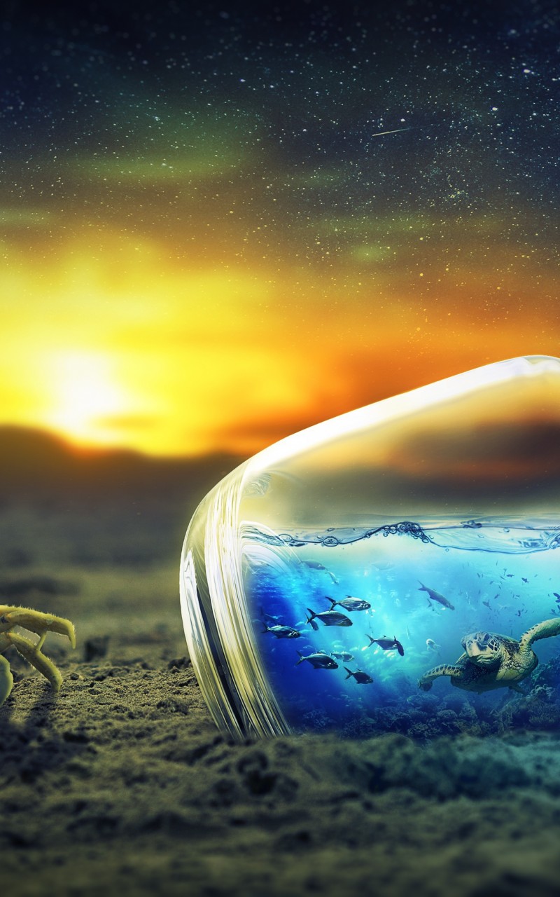 Fantasy Crab Sunset Bottle Wallpaper - 800x1280