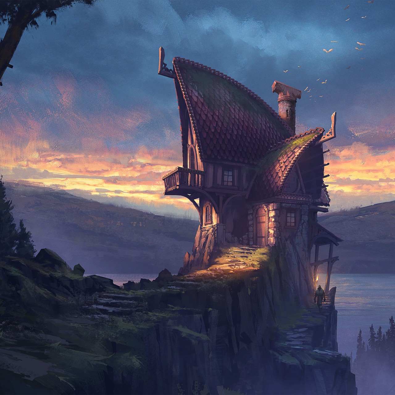 Fantasy Medieval House Forest Artwork Wallpaper - 1280x1280