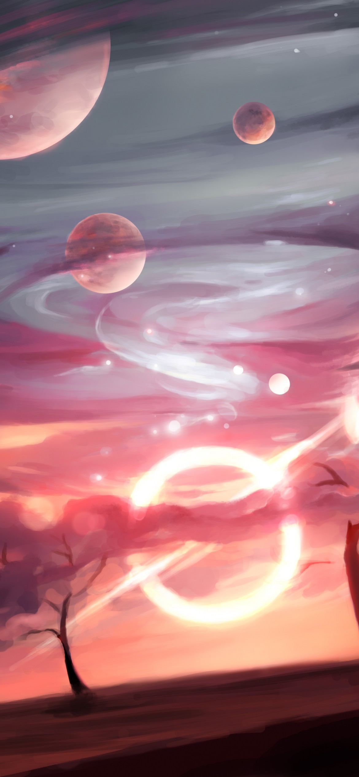Fantasy Planets Sky Black Hole Art Wallpaper - 1170x2532