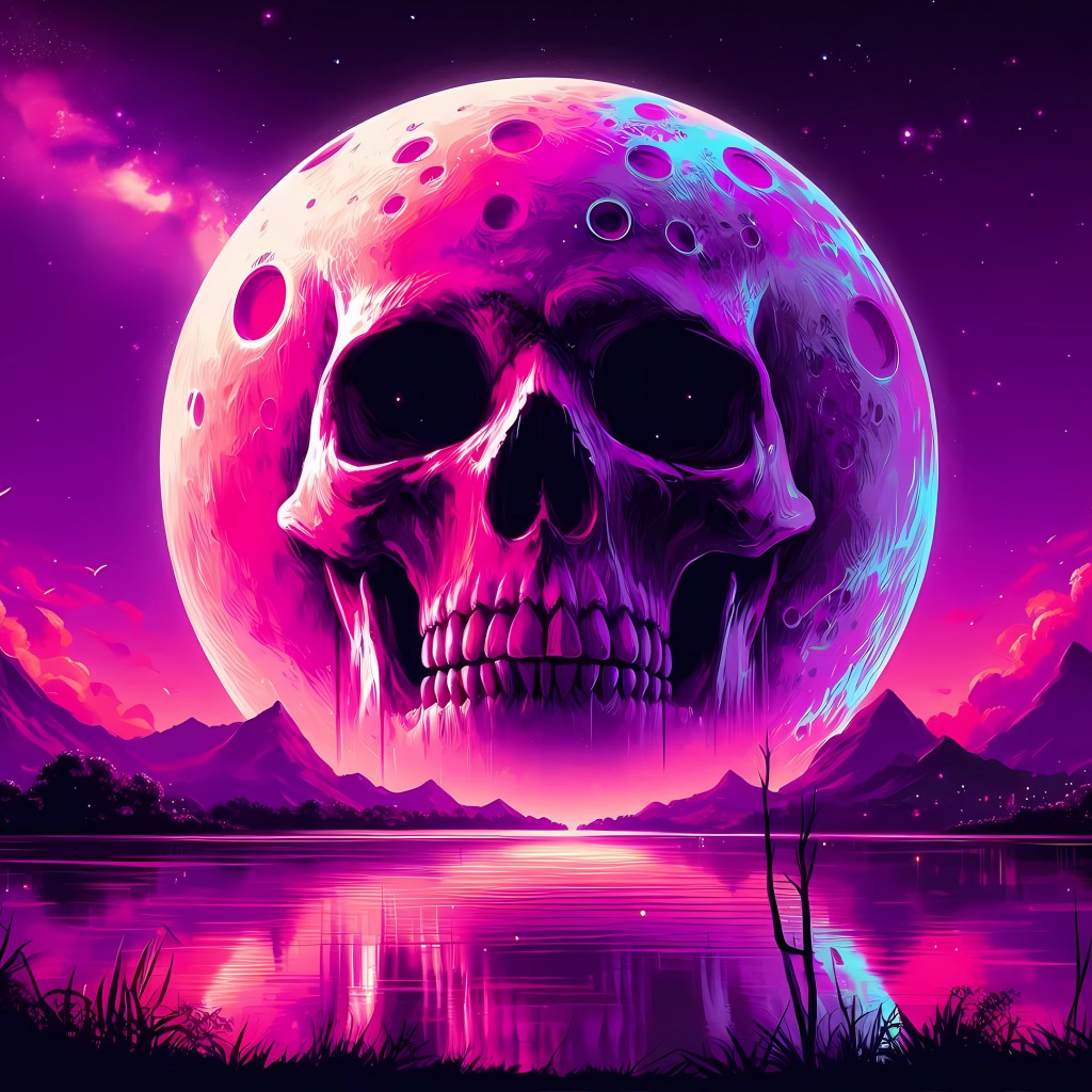 Fantasy Purple Skull Moon Scenery Wallpaper - 1024x1024