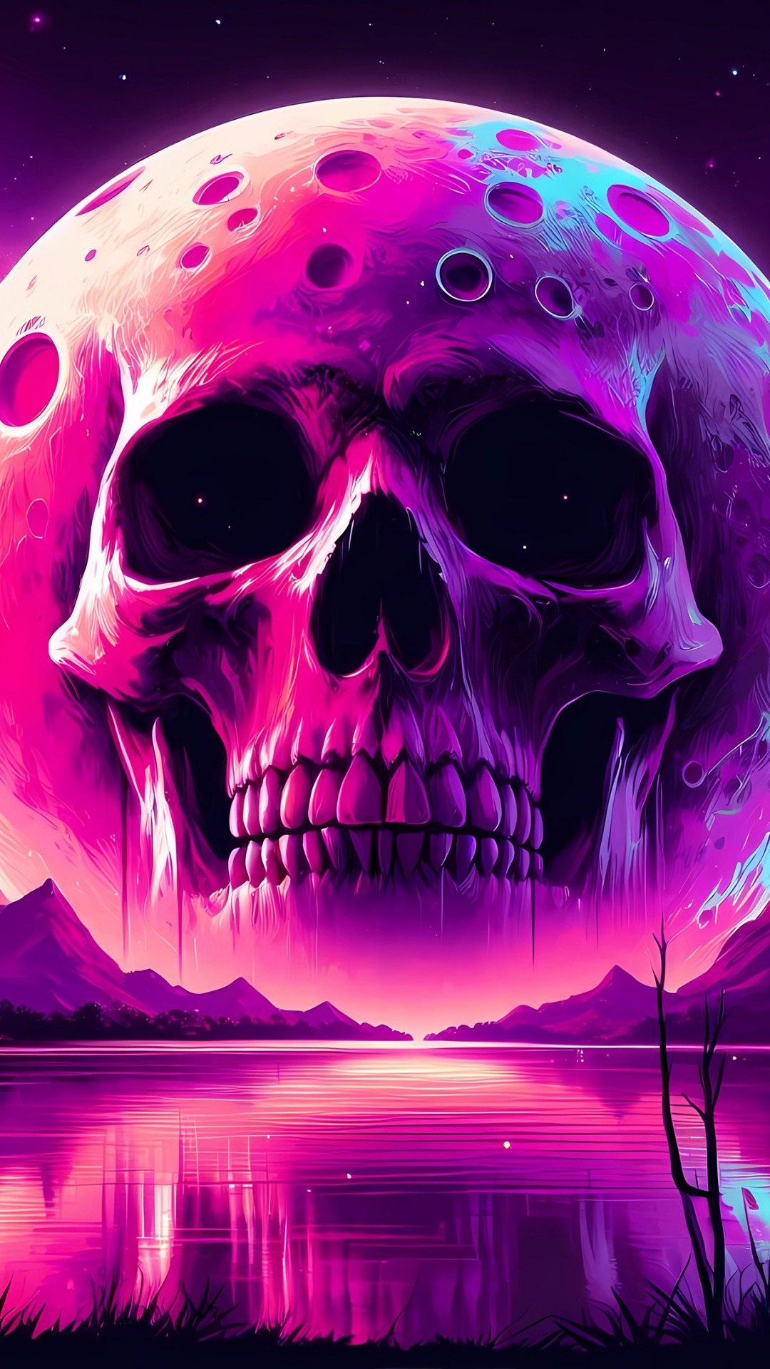 Fantasy Purple Skull Moon Scenery Wallpaper - 1080x1920