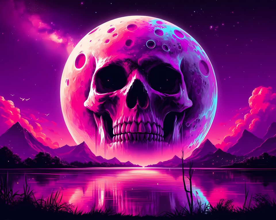 Fantasy Purple Skull Moon Scenery Wallpaper - 960x768