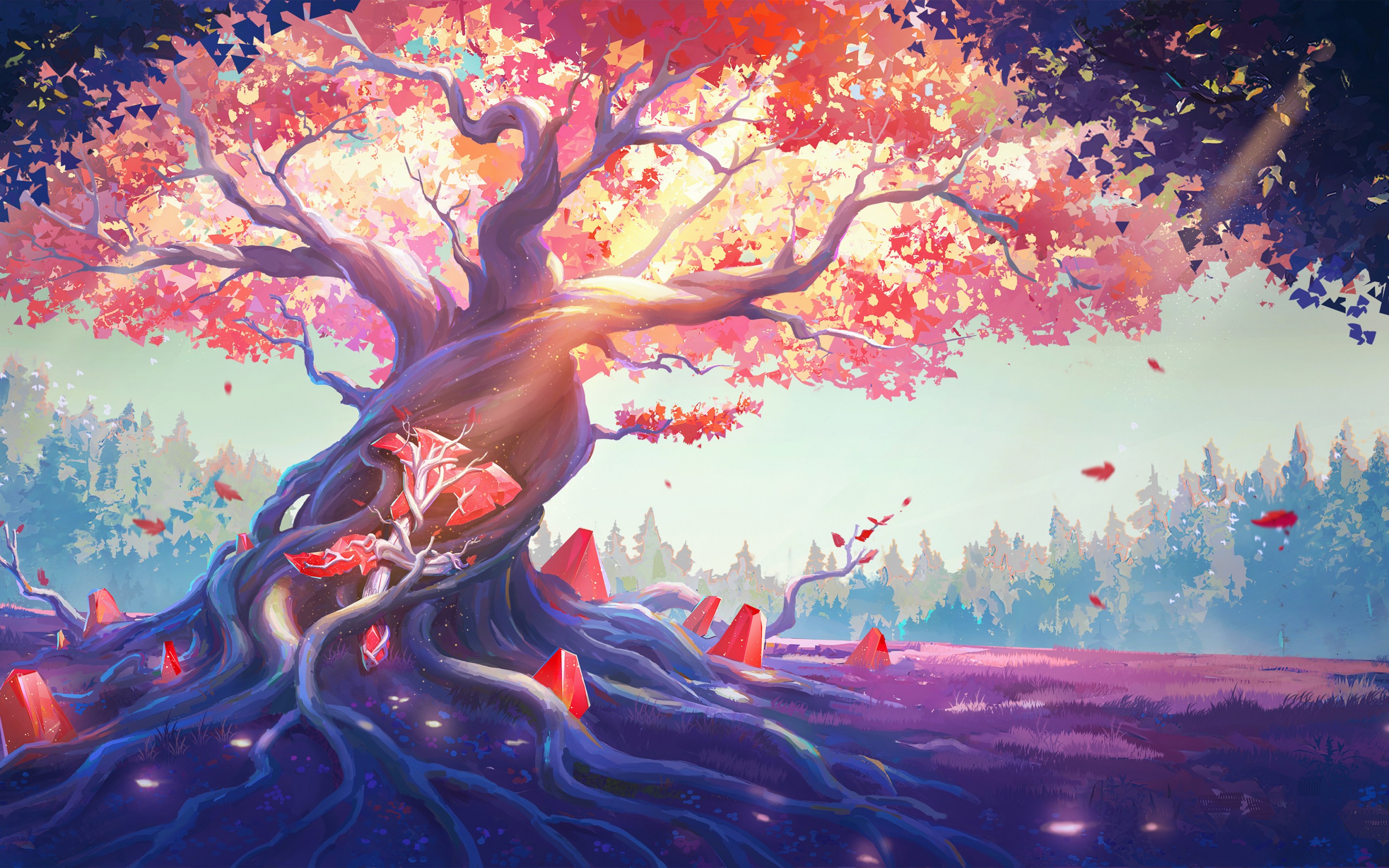 Fantasy Tree Axe Crystal Forest Wallpaper - 2880x1800