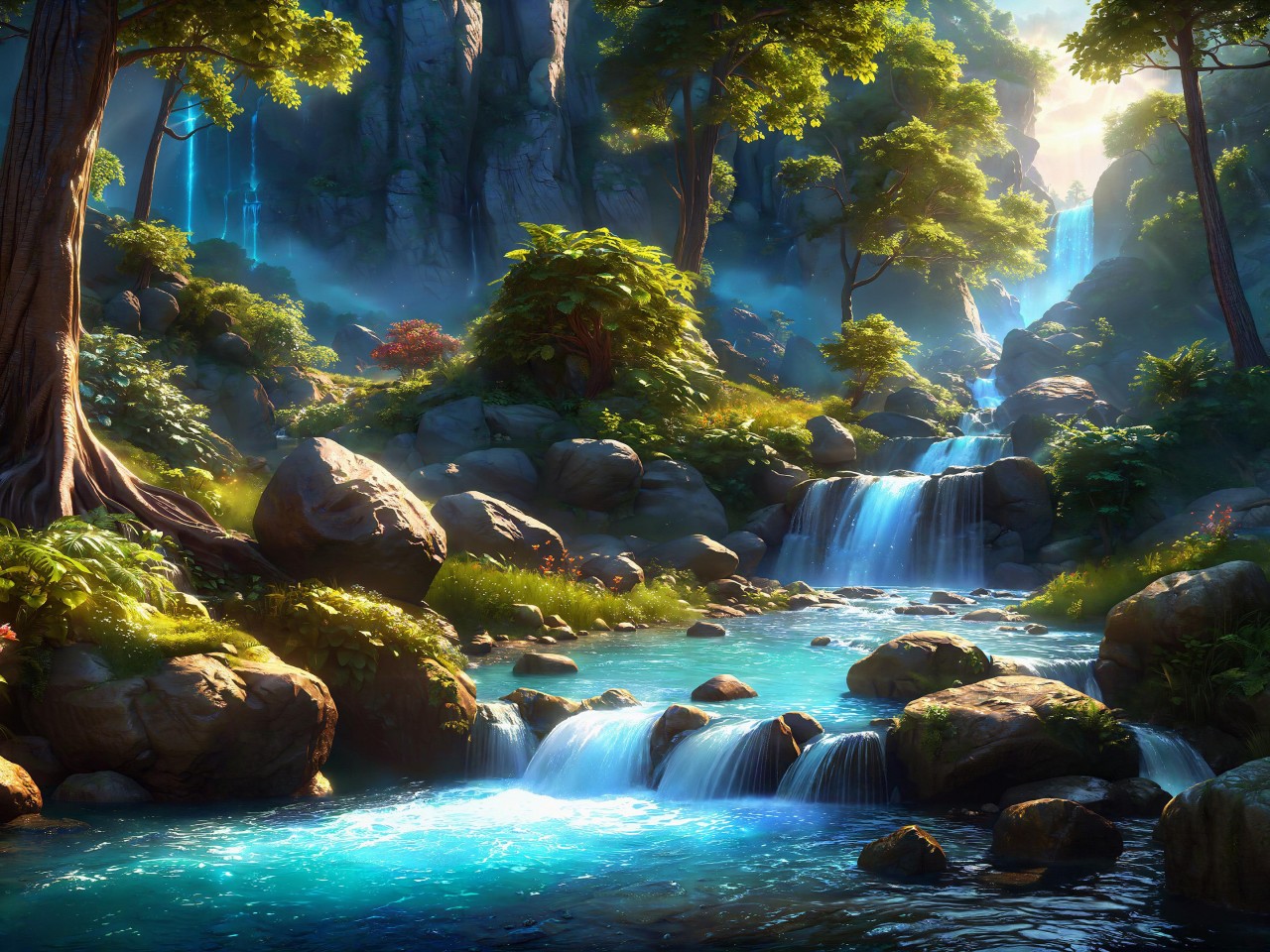 Fantasy Waterfall Landscape Art Wallpaper - 1280x960