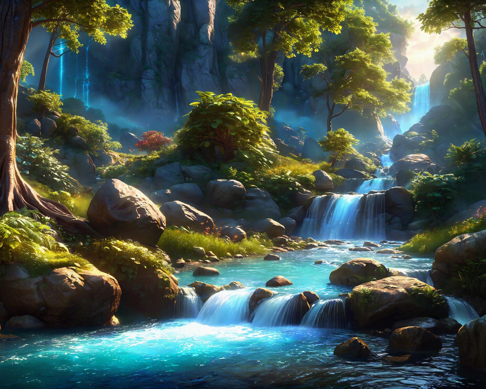 Fantasy Waterfall Landscape Art Wallpaper - 1600x1280