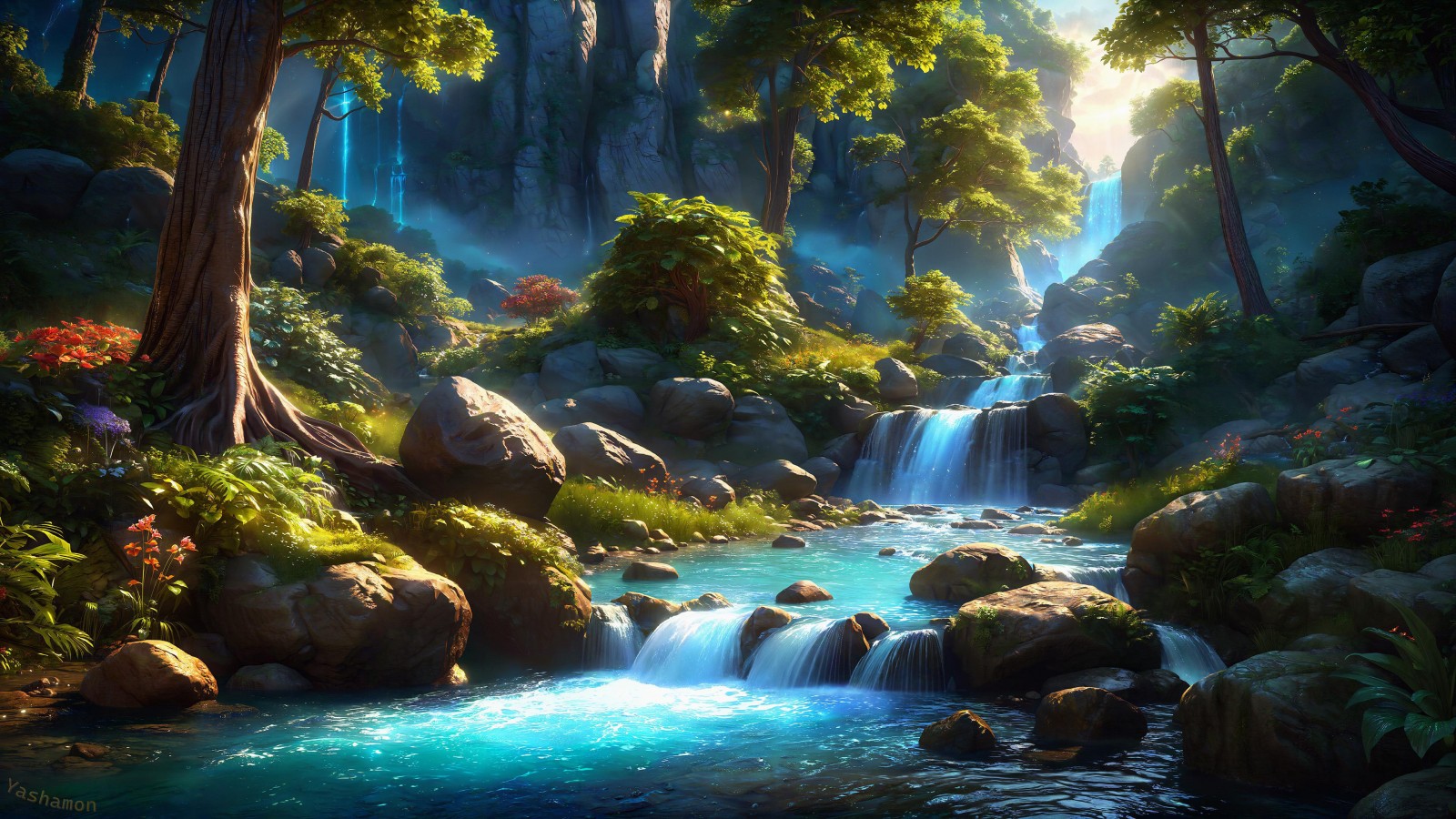 Fantasy Waterfall Landscape Art Wallpaper - 1600x900