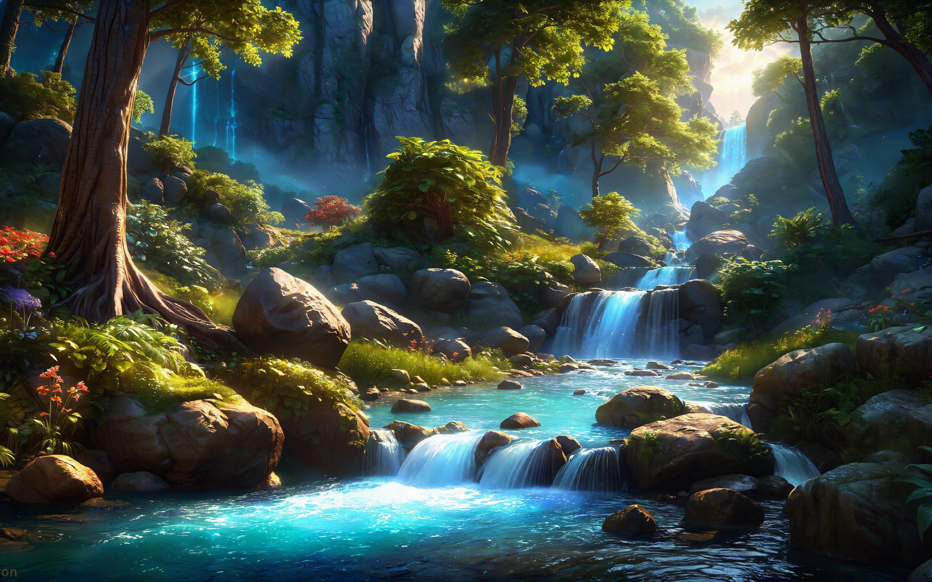 Fantasy Waterfall Landscape Art Wallpaper - 1920x1200