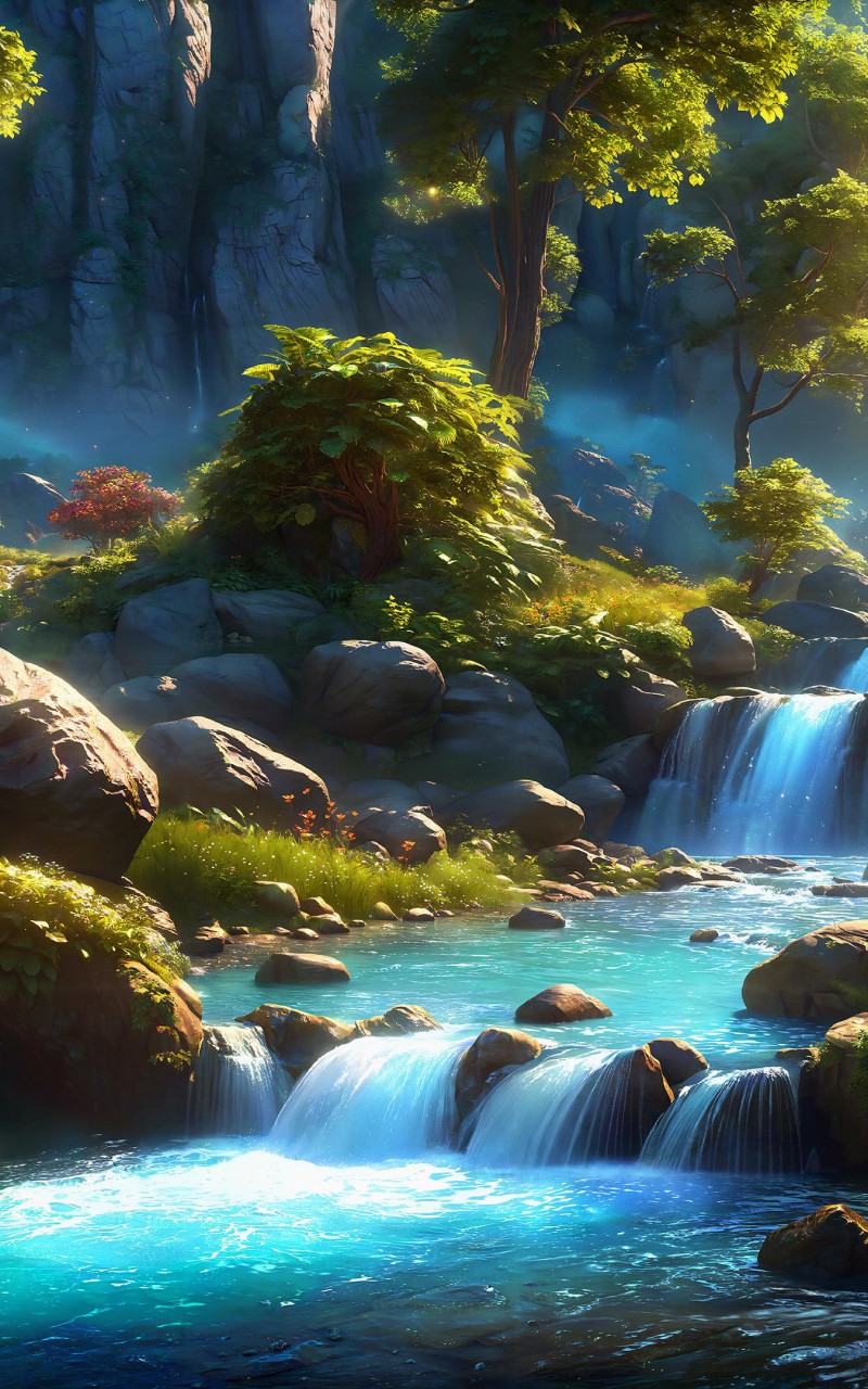 Fantasy Waterfall Landscape Art Wallpaper - 800x1280
