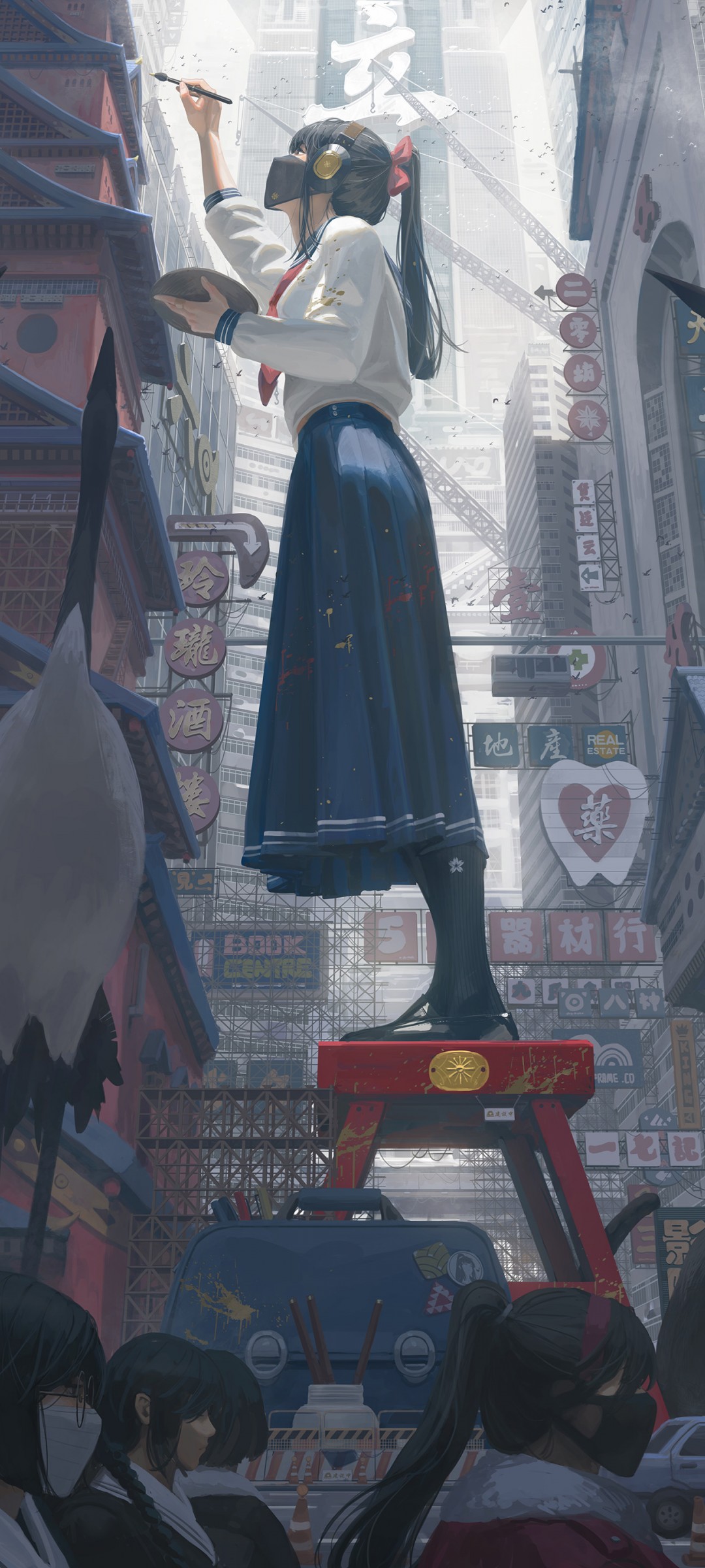 Japanese Anime Girl Painting Fantasy Art Wallpaper - 1080x2400