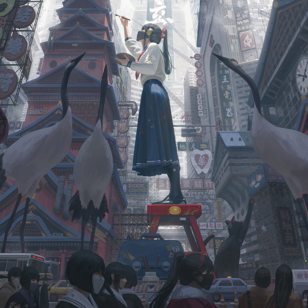 Japanese Anime Girl Painting Fantasy Art Wallpaper - 1280x1280