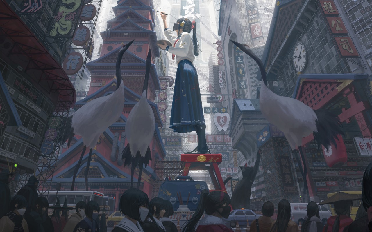 Japanese Anime Girl Painting Fantasy Art Wallpaper - 1280x800