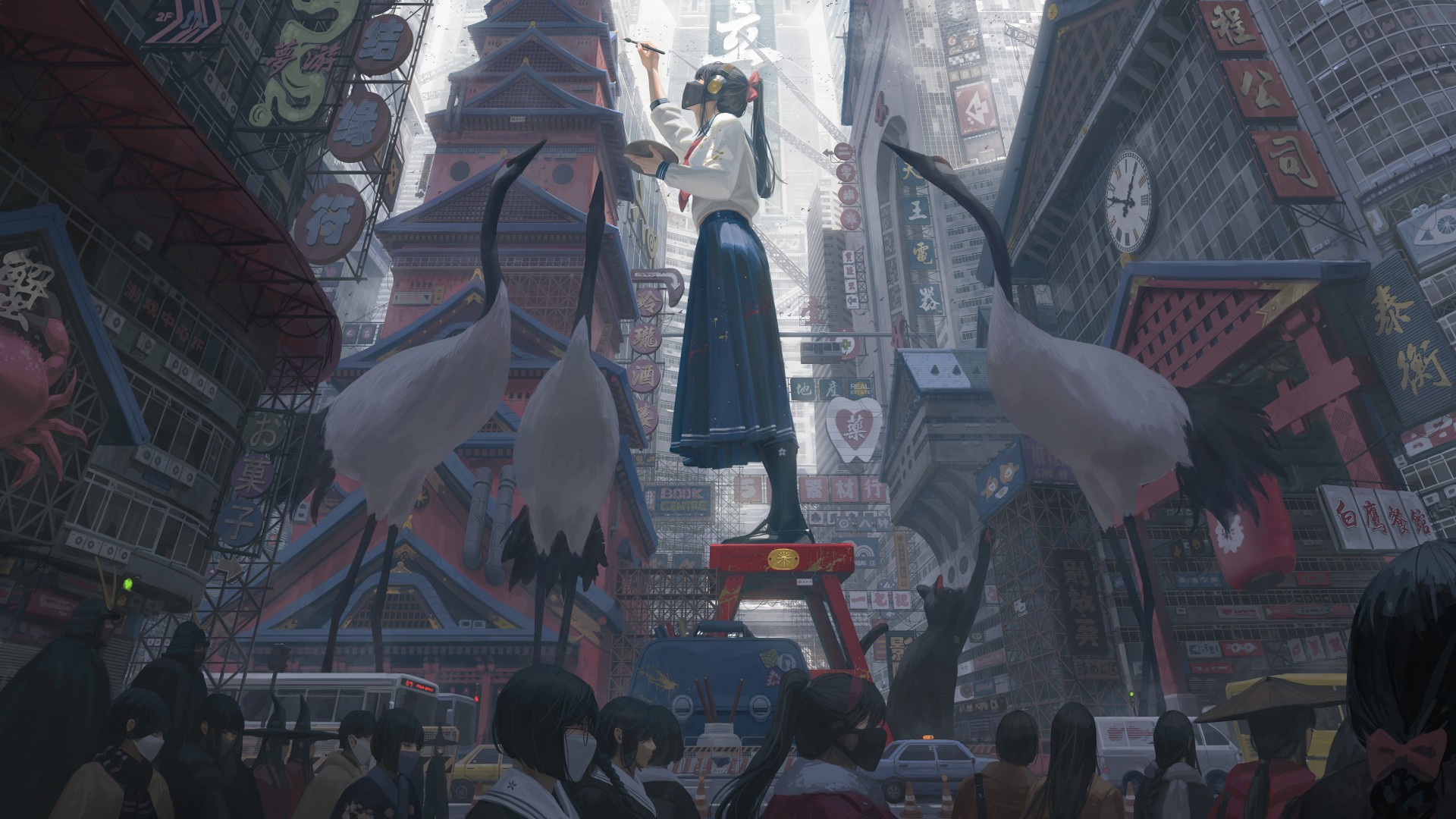 Japanese Anime Girl Painting Fantasy Art Wallpaper - 1920x1080