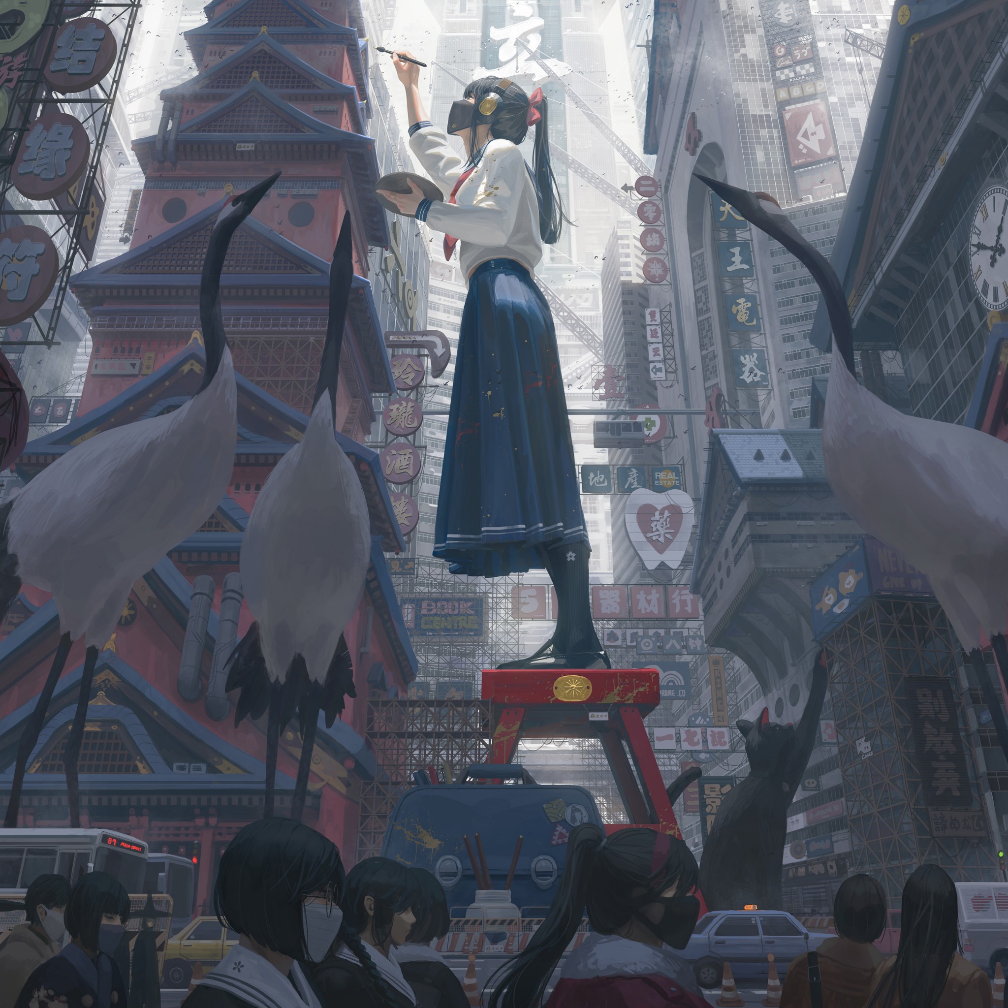 Japanese Anime Girl Painting Fantasy Art Wallpaper - 2048x2048