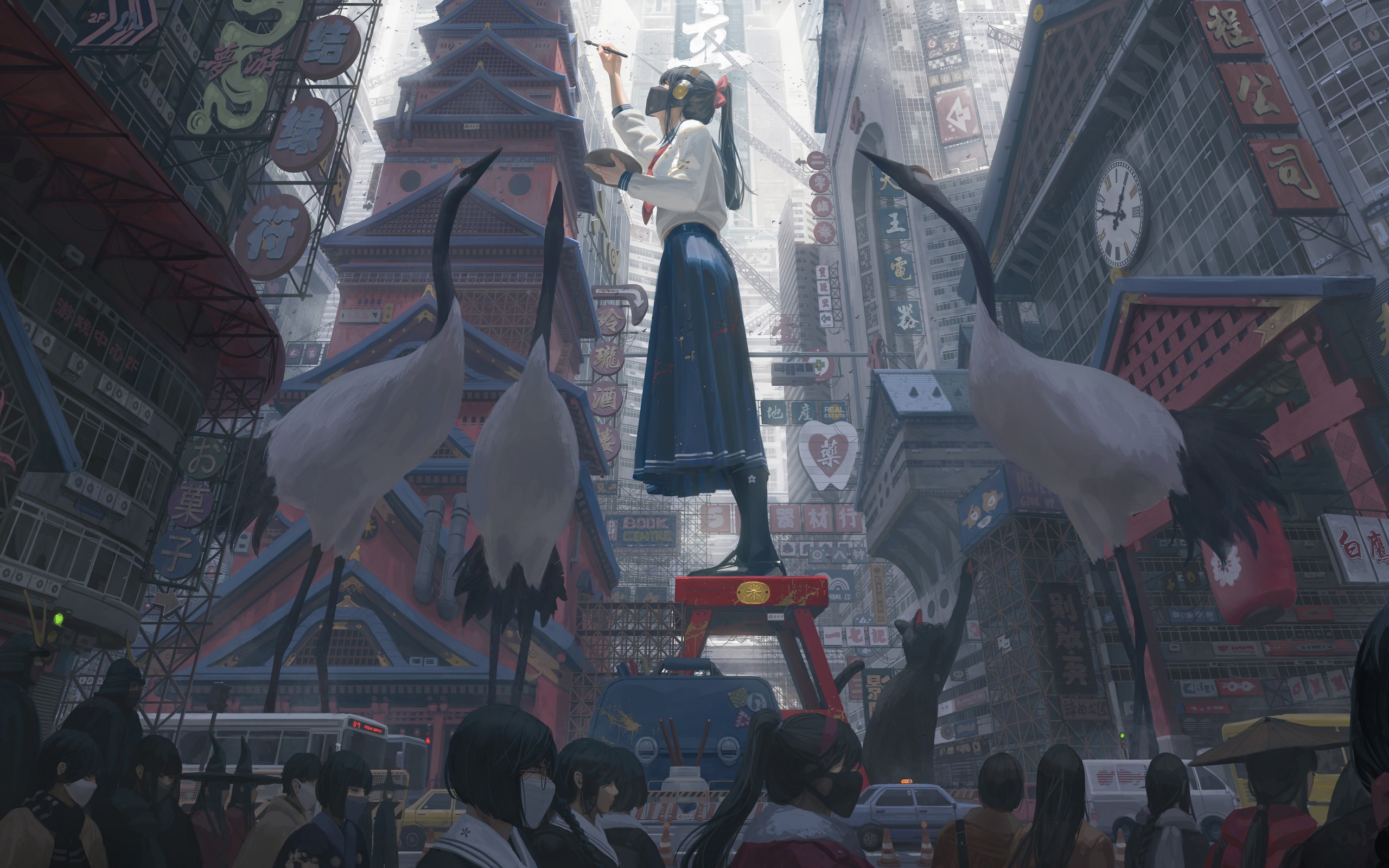 Japanese Anime Girl Painting Fantasy Art Wallpaper - 2560x1600