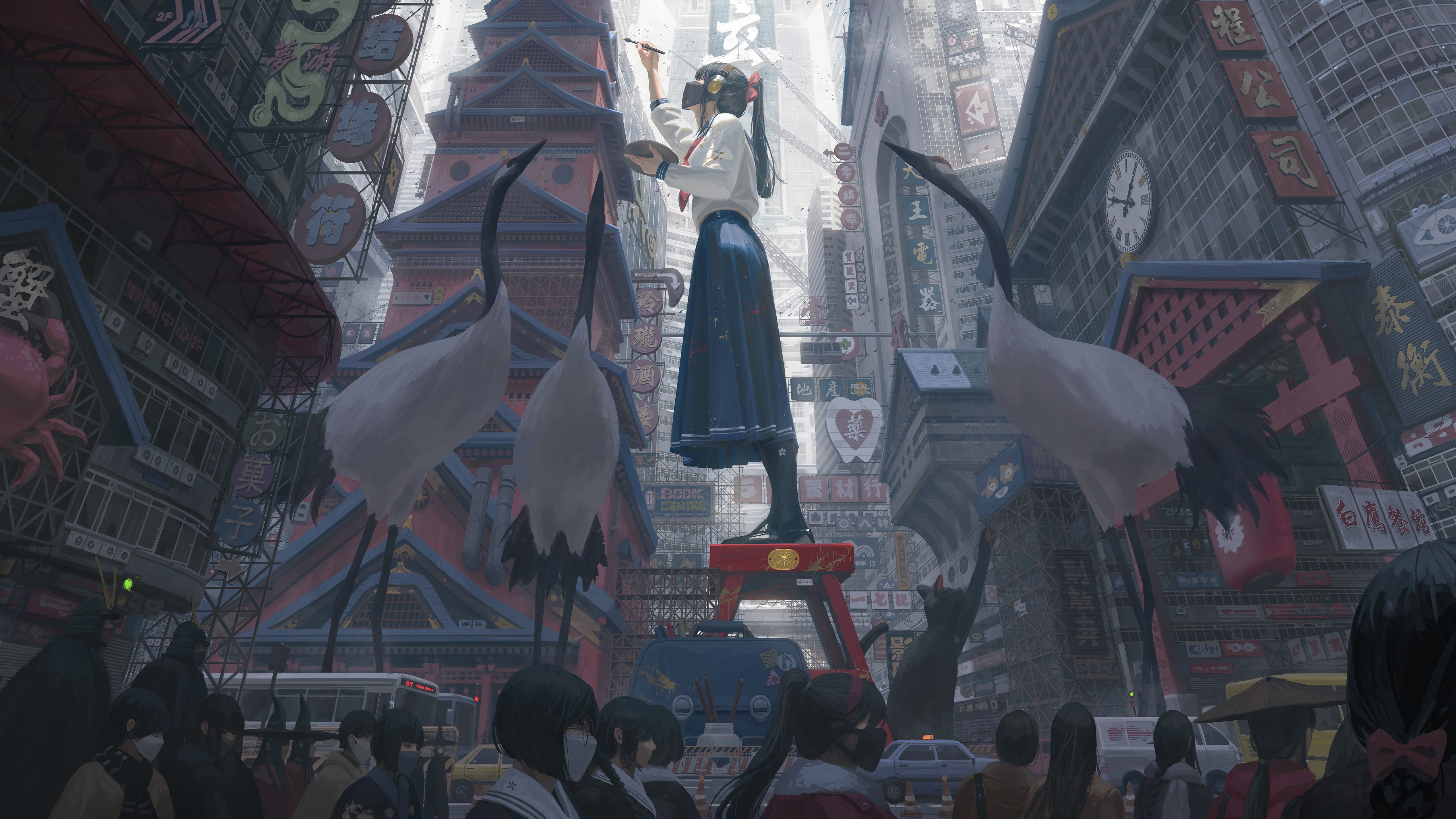Japanese Anime Girl Painting Fantasy Art Wallpaper - 5120x2880