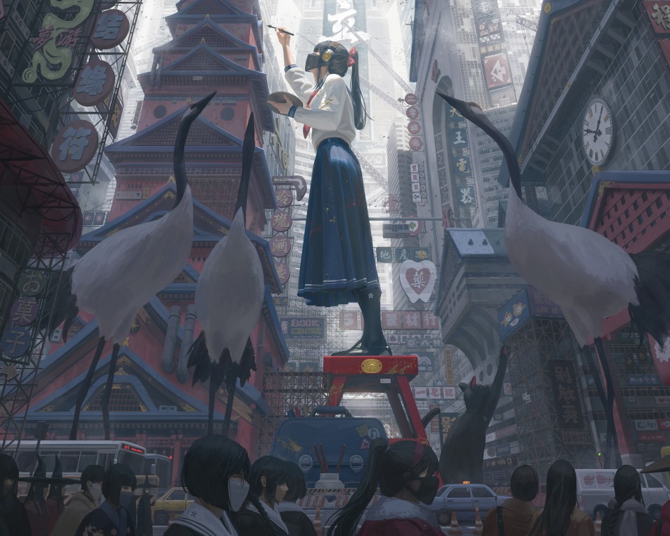 Japanese Anime Girl Painting Fantasy Art Wallpaper - 960x768