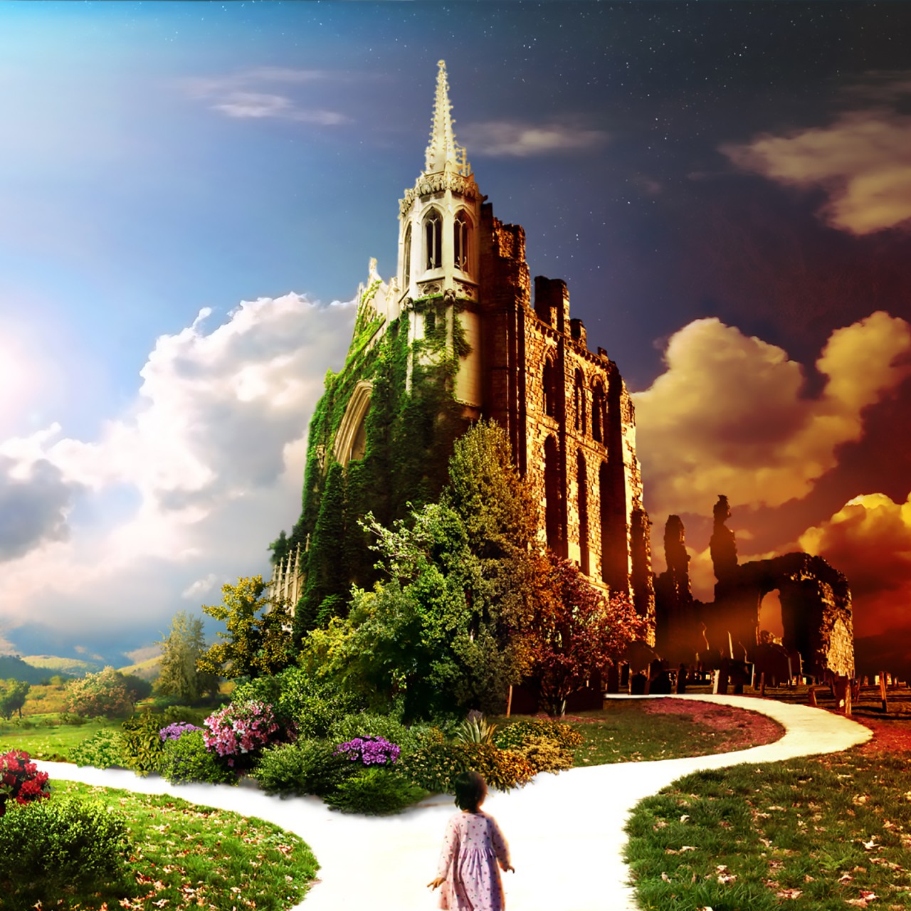 Split Road Castle Paradise Wallpaper - 1280x1280