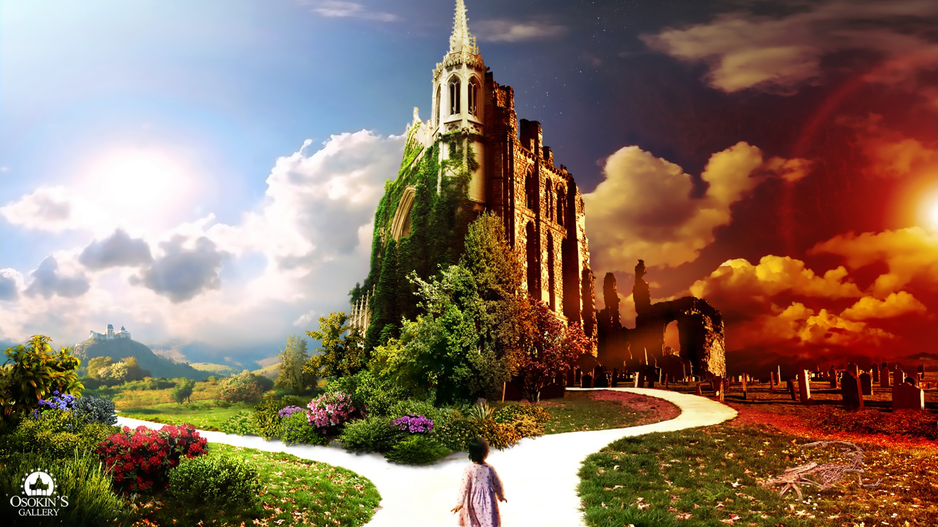 Split Road Castle Paradise Wallpaper - 1920x1080