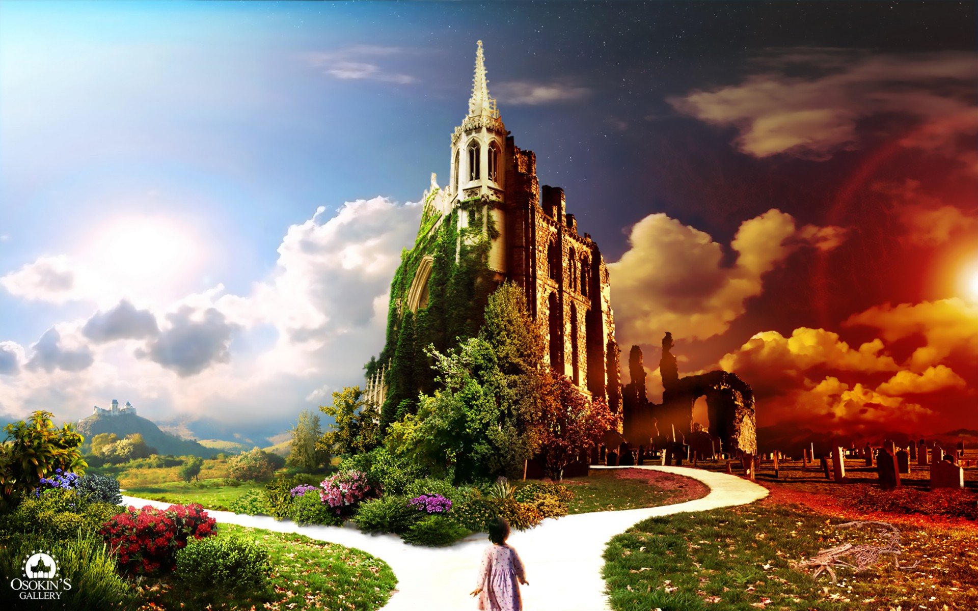 Split Road Castle Paradise Wallpaper - 1920x1200